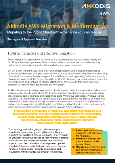 Akkodis has significant experience in migrating workloads, including existing legacy Commercial-Off-The-Shelf (COTS) software for x86 architectures and deploying them in the AWS Cloud.